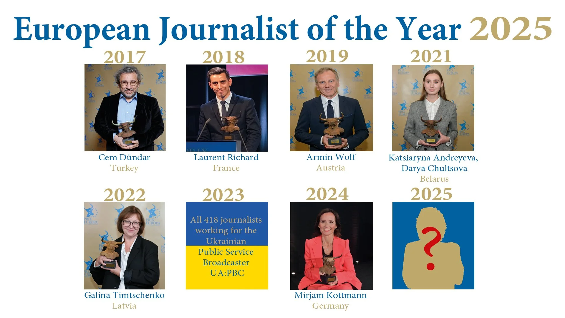 Our laureates embody these values and act as powerful ambassadors of democratic dialogue. Each production, each piece of content is an invitation to exchange, to reflect, and to engage – nourishing the democratic fabric that unites us. I warmly congratulate all participants: your commitment highlights the richness, resilience, and daily efforts of journalists and creators who strive for quality and rigorous public service media. Keep up the great work and continue to inspire.